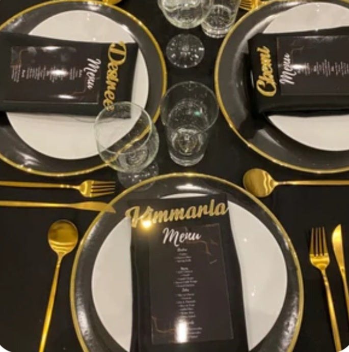 Enhance the décor of your wedding/dinner parties/Christmas and many other events with our stunning laser cut, mirrored or coloured place names. They make a perfect keepsake!